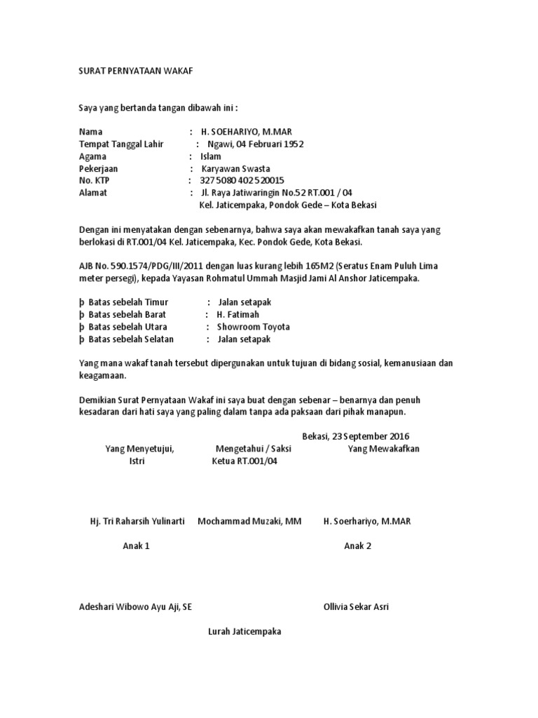 | Judul: Contoh Surat Pernyataan Ikrar Wakaf Surat Reading Places To Visit |