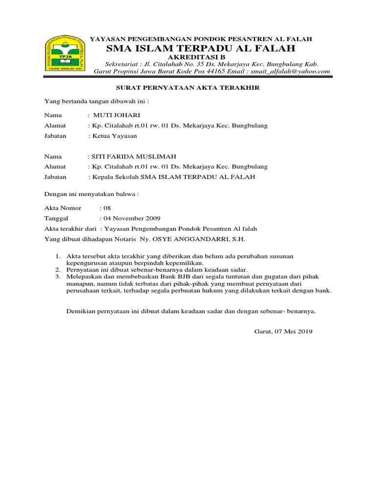 | Lihat Surat Pernyataan Akta Terakhir Pdf |